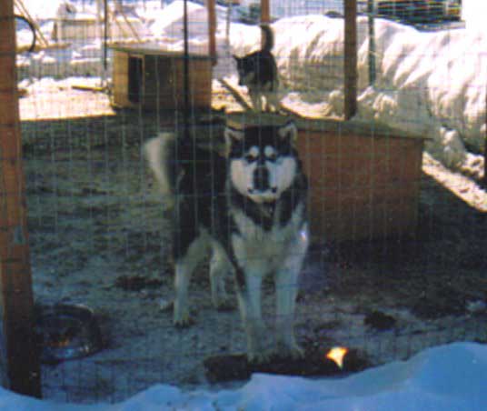Winter is another example of how a malamute needs a couple years to come into their own. She was the ugly-duckling that turned into the Beautiful White "Swan". Winter has a big beautiful head just like her dad. Winter is from a sled dog line from a very remote part of Alaska. Winter's bloodline is on the verge of extinction. She is one of the last of her line. Many of the white malamutes are related in the lower 48 and the lines are being inbred because of lack of knowledge of their breeders. But, Winter is no relation to any other white lines in the lower 48.